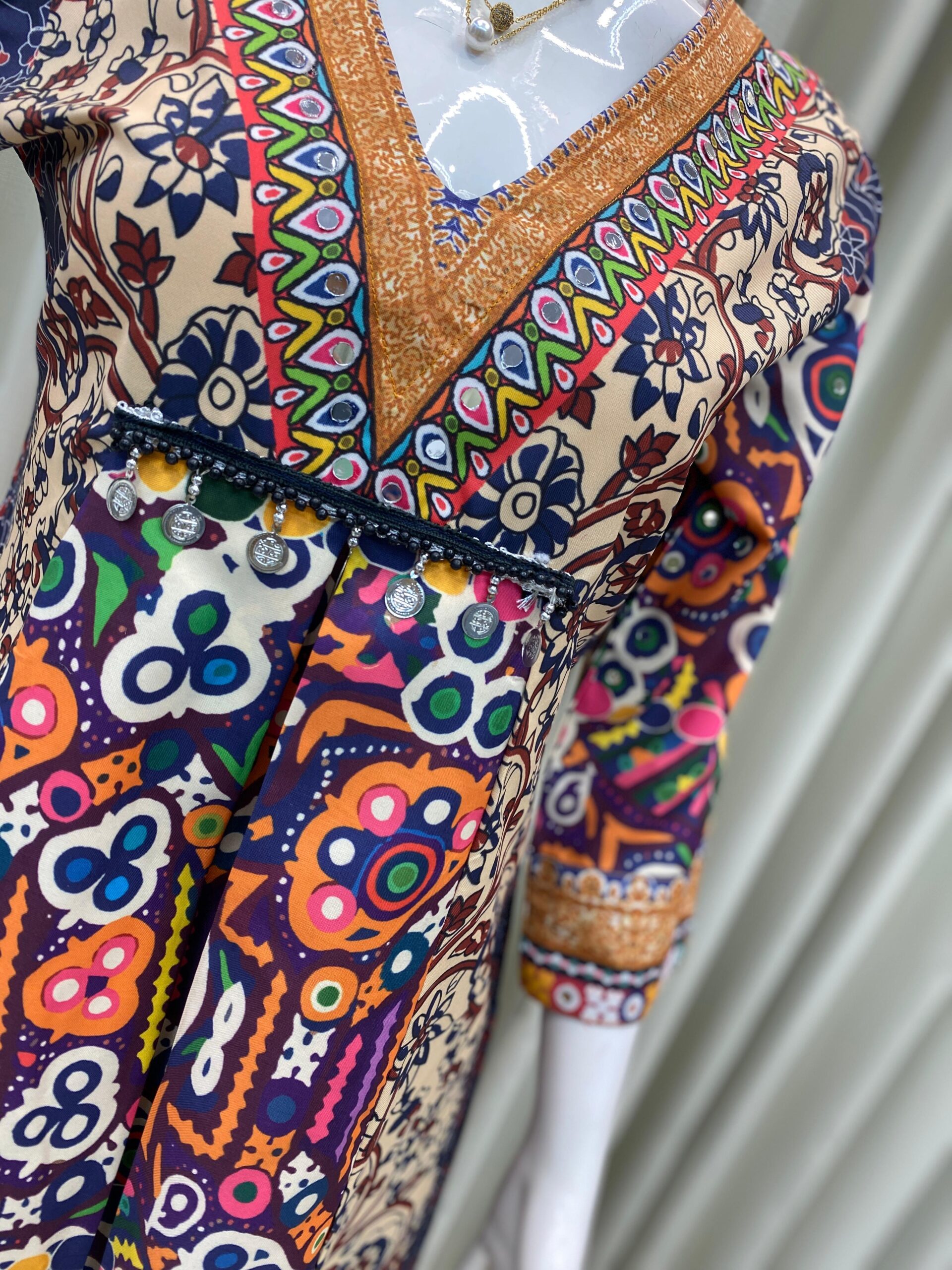 #TOP FABRICS :PRINTED REYON WITH COIN LACE WORK ON NECK(FREE SIZE)