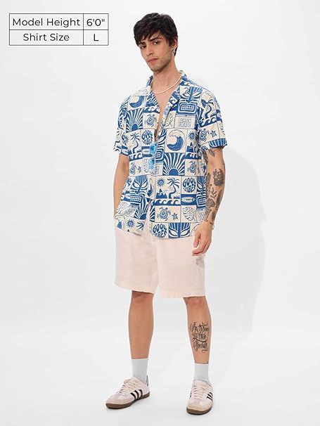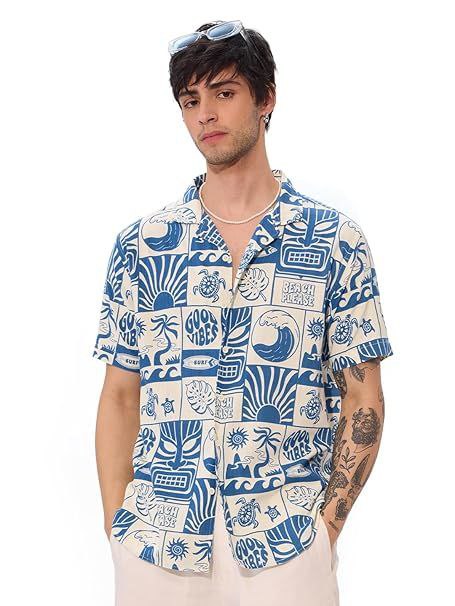 Crafted from lightweight, breathable cotton blend fabric, this shirt is designed to keep you cool and stylish all day long. Featuring a bold blue-and-white tropical print, it blends comfort with trend-forward fashion. The relaxed fit and soft-touch fabric make it perfect for beach vacations, casual outings, or evening get-togethers. Pair it effortlessly with chinos, denims, or shorts for a versatile look.